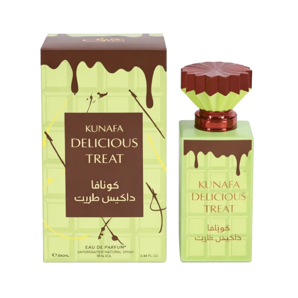 Kunafa Delicious Treat es una fragancia gourmand oriental unisex inspirada en el famoso postre árabe kunafa. Desde el primer spray se siente dulce, cálida y deliciosa, con un aroma que recuerda a postres cremosos recién hechos.